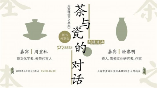 眾所周知,茶從喝到品,始于陸羽《茶經》?!恫杞洝肥鞘澜绗F存最早、最完整、最全面介紹茶的第一部專著,被譽為“茶葉百科全書”。而茶器具的制作離不開陶瓷。茶與瓷,都是中華文明的精髓,也是中國對世界物質文明的重大貢獻,二者有著密不可分的聯系。6月26日,知名茶文化學者、云茶代言人周重林老師與知名瓷人、陶瓷文化研究者涂睿明老師將做客大隱書局,為我們帶來他們關于茶與瓷話題的深入解讀。