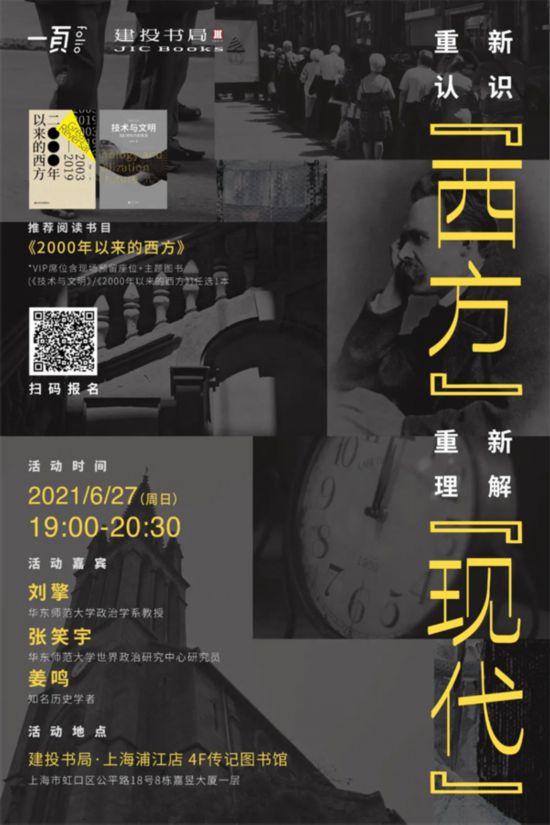 我們該如何重新認識和定位“西方”?21世紀前20年的西方到底發生了什么,未來又會怎樣?這是廣受贊譽的奇葩說導師劉擎教授在新書《2000年以來的西方》中所濃墨重彩探討的。歷史走到今天,我們是不是下意識地認為關于“什么是現代”的前提已經明確,內容已經存在,標桿已經活在現實之中?青年政治學家張笑宇在其新作《技術與文明》中提出了這樣的問題:到底什么是現代社會?現代社會是如何誕生的?關于現代社會的不同理解會撕裂這個世界嗎?6月27日,建投書局聯合一頁,邀請到《奇葩說》導師劉擎教授、青年政治學家張笑宇、知名歷史學者姜鳴做客建投書局·上海浦江店,與大家分享他們多年來對西方的觀察,以及對現代社會的理解。