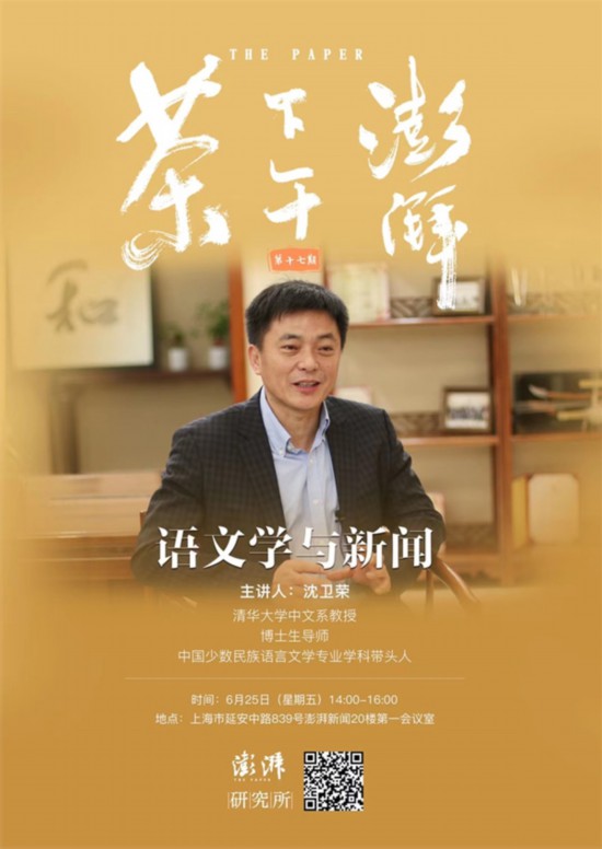 澎湃下午茶,邀請清華大學沈衛榮教授,為大家主講語文學與新聞。