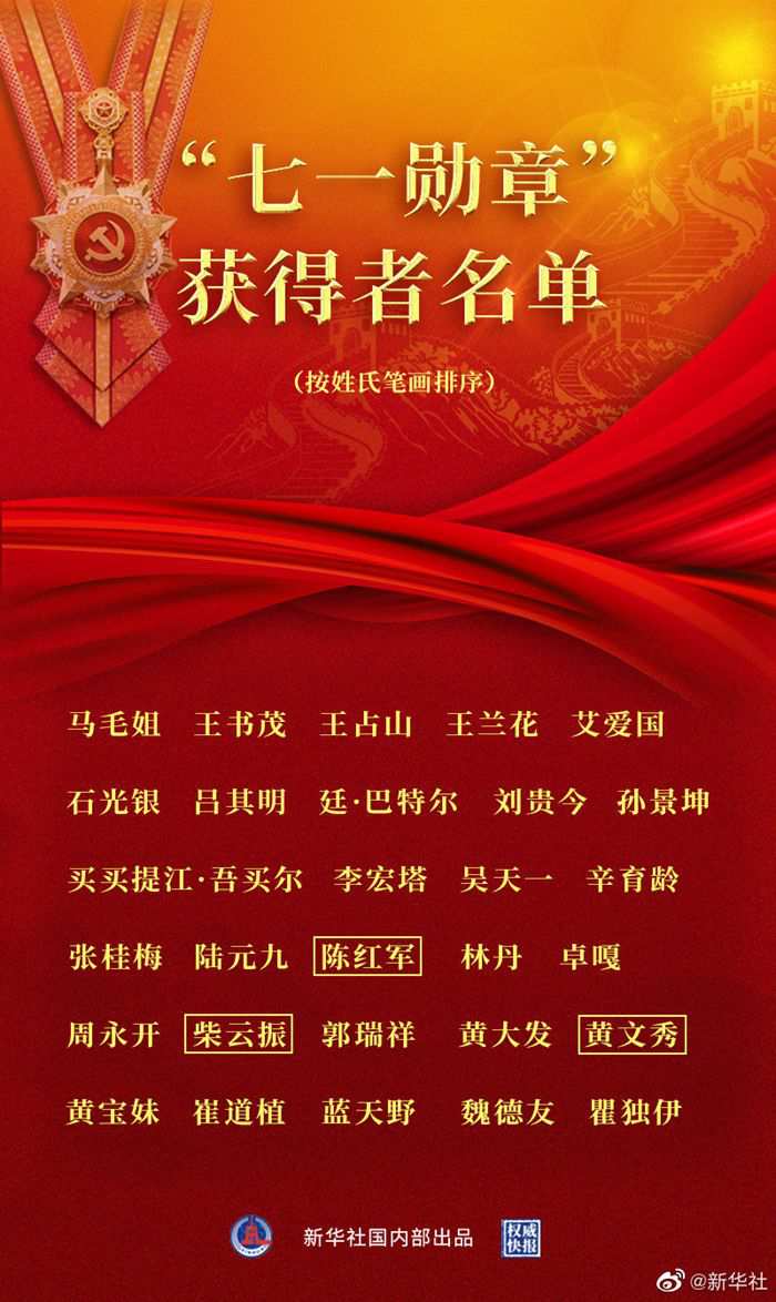根據《中共中央關于授予“七一勛章”的決定》,授予29名同志“七一勛章”。