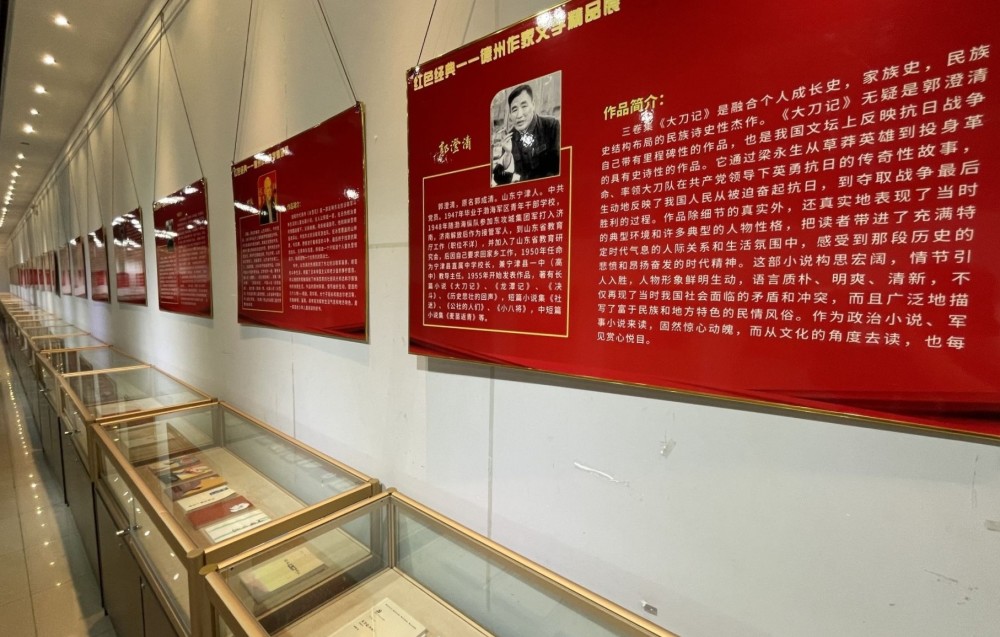 本次展覽展示了德州文學名家郭澄清的成名作《大刀記》,也展示了德州名家田毅、楊英國的長、中、短篇小說作品和任先青的詩歌作品,以及活躍在當下文壇的中青年作家各類體裁的文學作品,老中青結合、陣容龐大、門類齊全,展示出了德州文學創作的整體實力。