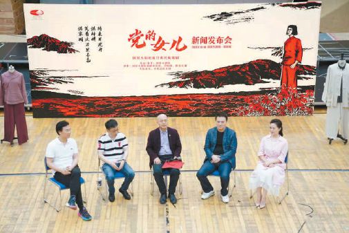 主創團隊介紹《黨的女兒》排練進度。 本報記者 方非攝