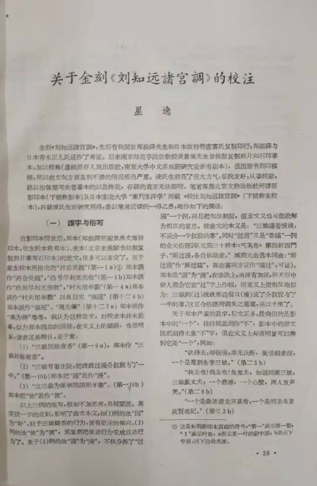 星逸(張心逸)《關于金刻〈劉知遠諸宮調〉的校注》