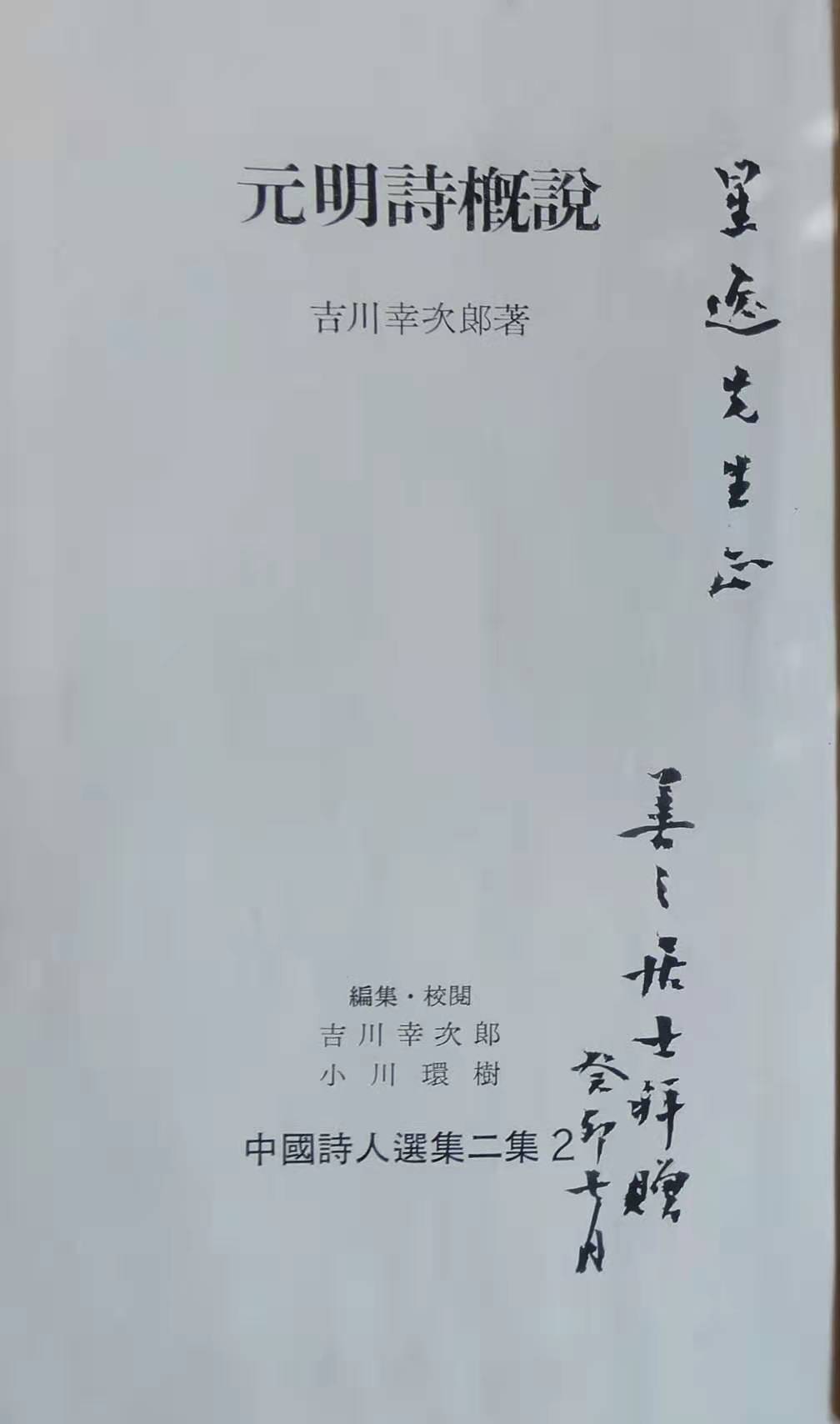 吉川幸次郎(善之居士)寄贈給張心逸的《元明詩概說》