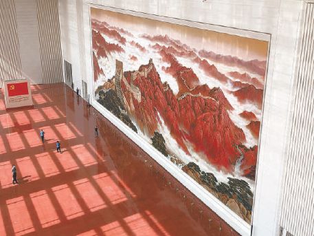 超大漆壁畫《長城頌》亮相黨史館 畫作總面積600平方米 100塊漆板寓意建黨百年