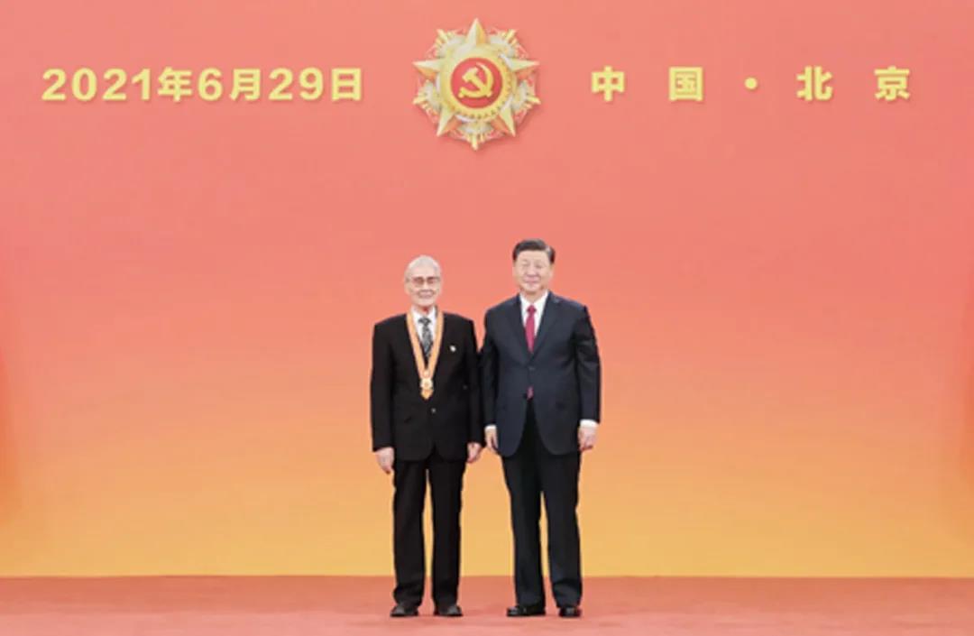 6月29日,慶祝中國共產黨成立100周年“七一勛章”頒授儀式在北京人民大會堂金色大廳隆重舉行。中共中央總書記、國家主席、中央軍委主席習近平向“七一勛章”獲得者藍天野頒授勛章。新華社記者 李學仁 攝