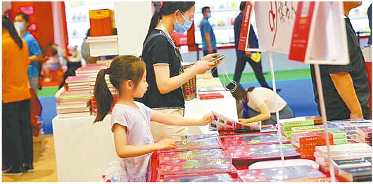 日前,在濟南舉行的第30屆全國圖書交易博覽會上,兒童書籍占重要一席。一方面,大量紅色童書出現在展臺上;另一方面,不少家長帶著放暑假的孩子們前來“打卡”,各個場館成了孩子們的閱讀樂園。