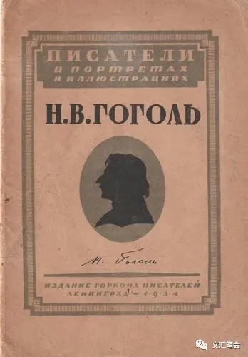 封面書名下的正中間,是一幀果戈理的黑色肖像剪影,他的鼻子挺拔,面容飽滿,富有精神。下面印著果戈理的俄文簽名手跡。然后是“彼得堡作家市委會出版于列寧格勒1934”字樣。