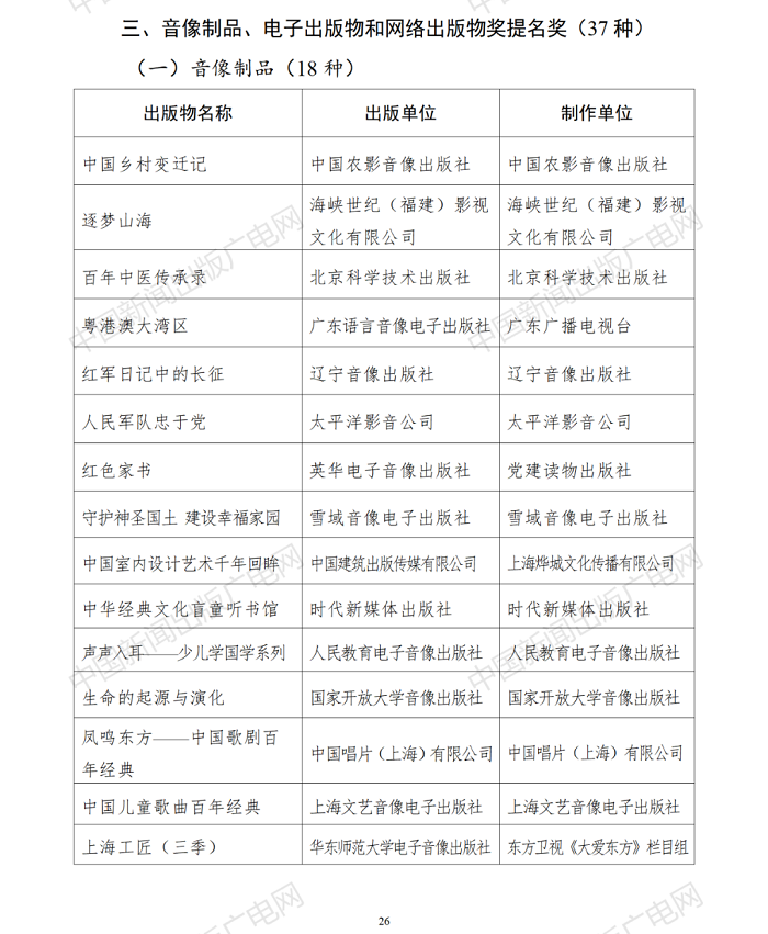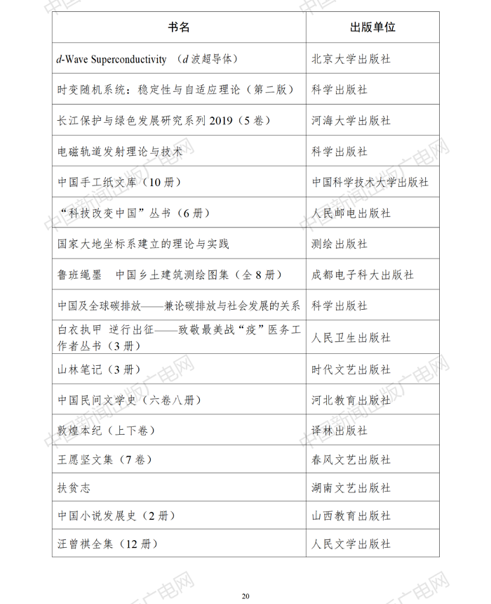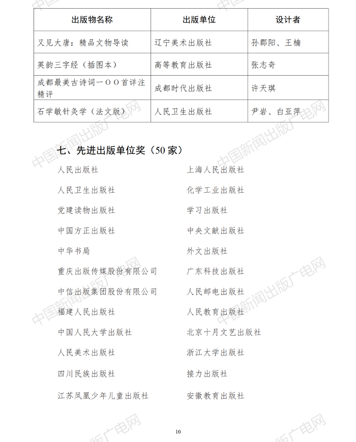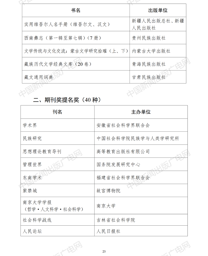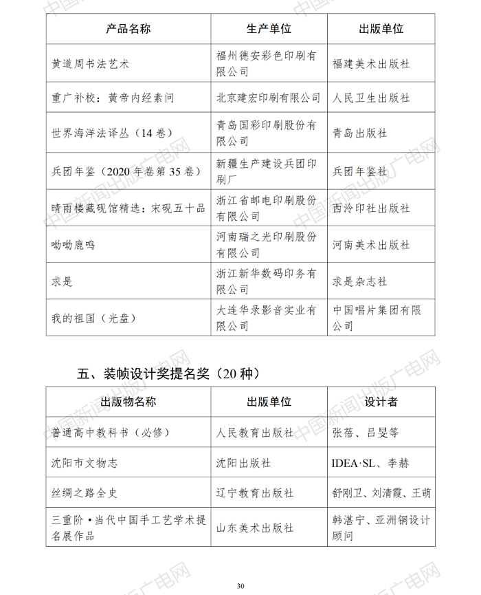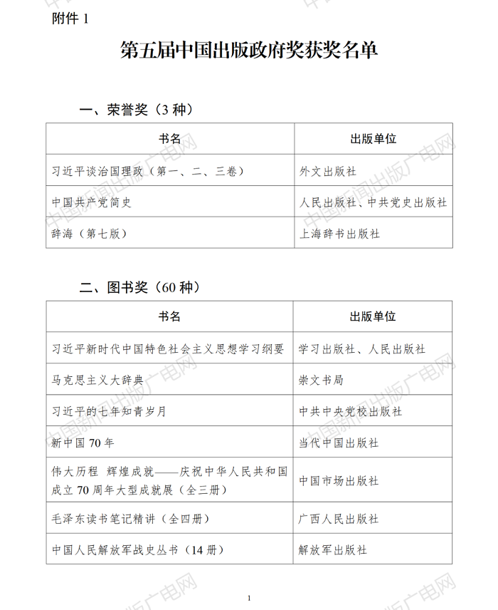 2. 第五屆中國出版政府獎提名獎獲獎名單