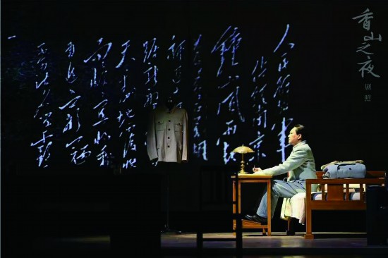 大幕拉開,扮演毛澤東的演員王斑為了練習湖南口音,朗讀了一段毛澤東在1954年中華人民共和國第一屆全國人民代表大會第一次會議上的開幕詞;全劇結尾,站在桌子后面的“毛澤東”面對臺下的觀眾,伴著強有力的形體動作,再次讀出這段令人熱血沸騰的宣言:“我們的事業是正義的。正義的事業是任何敵人也攻不破的。領導我們事業的核心力量是中國共產黨。指導我們思想的理論基礎是馬克思列寧主義。我們有充分的信心,克服一切艱難困苦,將我國建設成為一個偉大的社會主義共和國。我們正在前進。我們正在做我們的前人從來沒有做過的極其光榮偉大的事業。我們的目的一定要達到。我們的目的一定能夠達到?!笨梢哉f,這段話不啻為這部戲的戲核。香山的那一夜是繼往開來的一個重要時間節點,正如習近平總書記所強調的:歷史充分證明,中國共產黨和中國人民不僅善于打破一個舊世界,而且善于建設一個新世界。展望未來,中國的發展前景無限美好。