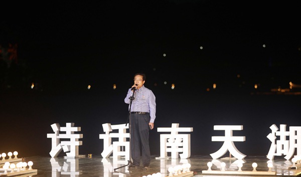 詩伴歌,云映湖,7月10日晚,首屆“詩話南天湖”文化朗誦活動在豐都縣南天湖畔舉行。重慶詩詞學會的近二十位文學志愿者參與活動。