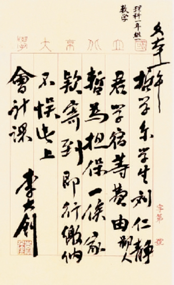 “哲學系學生劉仁靜君學宿等費由鄙人暫為擔保,一俟家款寄到,即行繳納不誤。此上會計課。李大釗?!崩畲筢摷o念館里的這張擔保信,是李大釗資助眾多革命青年學生的縮影。這幅尺牘,文字質樸敦實,沉穩端莊,正如李大釗的為人風范。李大釗不只為北京大學貧困學生劉仁靜寫拖欠學費的保函,還多次墊付學費,并引導他走上革命之路。當然,受李大釗資助的也并非只有劉仁靜,還有眾多的青年學生、工人。