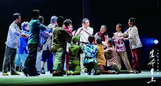 在豐富龐雜的歷史事件中,劇作家獨具慧眼,挖掘出類似上述的諸多故事與細節,塑造出栩栩如生的人物形象,通過生動的藝術表現,一一予以講述。并且,這些講述與抗擊新冠肺炎疫情這條輔線交織在一起,把當年“戰天斗地,敢為人先,不達目的,誓不罷休”的血防精神和今天“生命至上,舉國同心,舍生忘死,尊重科學,命運與共”的抗疫精神融匯在一起,從而實現了歷史感與時代感的統一。因為這些故事所觸及的問題,在今天仍然具有強烈的現實意義。余江縣消滅血吸蟲的斗爭所蘊含的科學精神、奮斗精神和制度力量,無不閃耀著新時代之光。故而,人們觀看此劇,便可以從中汲取到新長征路上奮進的力量。姜朝皋不愧是中國劇壇的常青樹,以其精妙的創作,讓這部戲成為一曲生命至上的頌歌,成為一本如何實現生命之上的教科書。