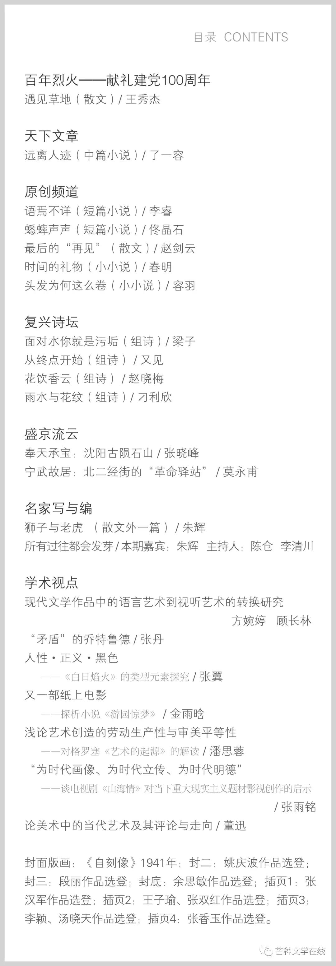 《芒種》2021年第8期目錄
