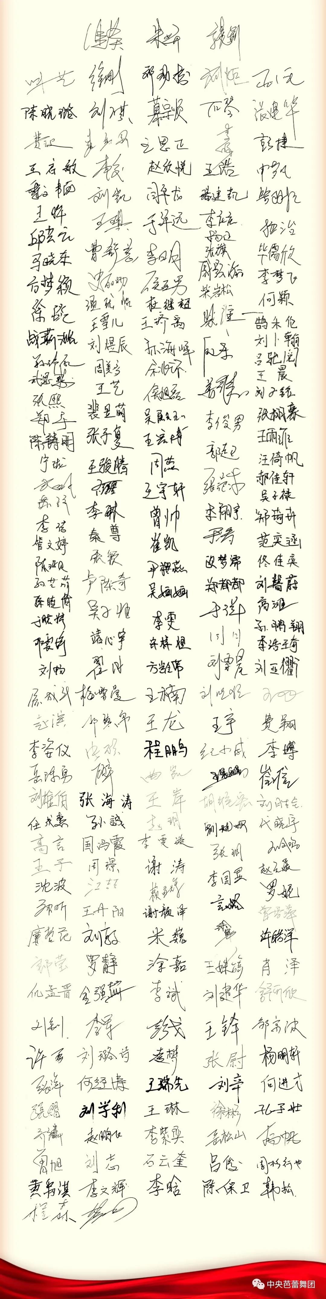 日前,中國文聯向全國文藝工作者發出《修身守正 立心鑄魂——致廣大文藝工作者倡議書》。中央芭蕾舞團全體藝術家在第一時間積極響應,并在《倡議書》上鄭重簽名。作為國家藝術院團文藝工作者,中芭全體藝術家將始終保持清醒的頭腦,以良好的職業面貌和飽滿的精神狀態,推出更多更好的優秀作品,以高遠志向、良好品德與高尚情操為社會作出表率,做對國家、對民族、對人民有貢獻的藝術家,繼續為實現人民對美好生活的向往而不懈努力,為建設社會主義文化強國做出自己的貢獻。
