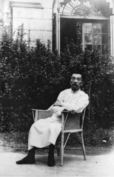 1925年7月4日攝于北京。為《阿Q正傳》英譯本所攝。魯迅在當日日記中記載此事:“午后往中央公園,在同生照相二枚?!薄栋正傳》英譯本的譯者梁社乾,在翻譯中曾得到魯迅的幫助。譯本于1926年由上海商務印書館出版,但魯迅的照片未被印入。