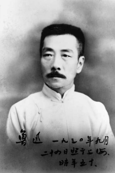 1903年攝于日本。這張照片被稱為“斷發照”,是現存最早的魯迅單人照。魯迅在弘文學院剪辮后,拍照留念,并贈與同學兼同鄉友人許壽裳一張。許壽裳稱魯迅贈與照片同時,還贈七言詩一首與他,“靈臺無計逃神矢,風雨如磐暗故園。 寄意寒星荃不察,我以我血薦軒轅?!濒斞溉ナ篮?,許壽裳在回憶錄中將這首詩定名為《自題小像》。魯迅一生很看重這張照片,多次將其洗印贈友。