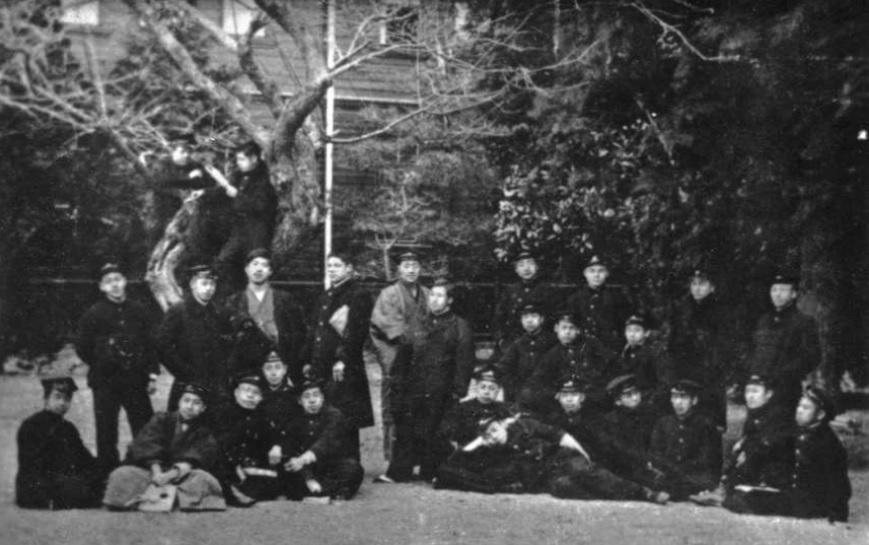 1905年攝于日本仙臺。魯迅與仙臺醫專同學合影,中排右起第三人為魯迅。