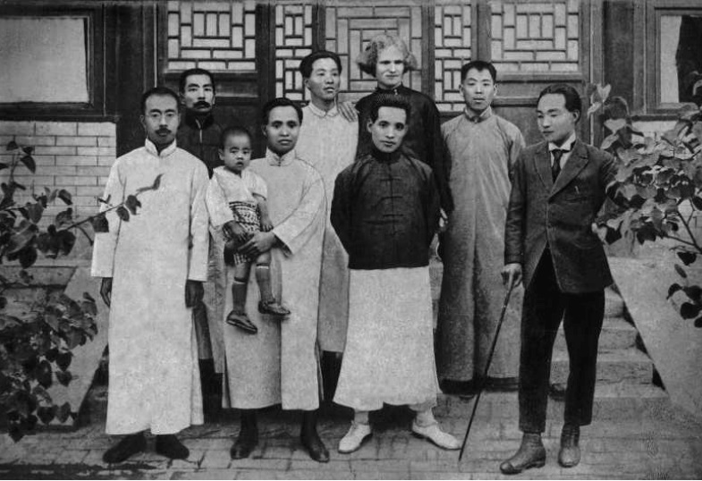 1923年4月攝于北京。愛羅先珂自1922年到北京大學任教世界語和俄國文學后,蔡元培便將愛羅先珂托付給周氏兄弟照料。愛羅先珂是盲人,但他的授課與演講都非常出色。圖為魯迅(后排左一)、周作人(前排左一)與愛羅先珂(后排左三)合影。