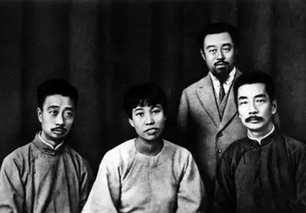 1903年攝于東京,時魯迅在弘文學院。照片上其他三人均為紹興人。與魯迅并排而立者許壽裳,弘文學院浙江班學生;許壽裳前面坐者邵明之,東京清華預備學校學生,后往北海道札幌地方工業專門學校學習土木工程;魯迅之前為陳儀,日本成城學校學生,后就讀于日本陸軍大學,曾任臺灣省行政長官兼臺灣省警備總司令部總司令、浙江省省長。
