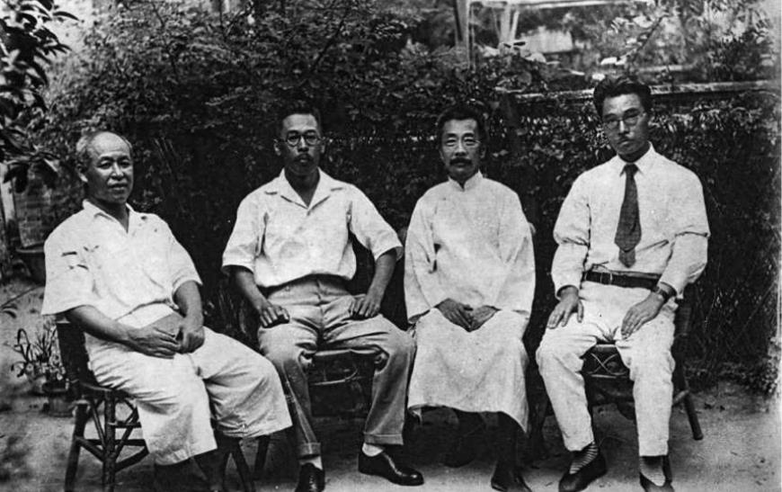 1934年8月29日攝于上海。魯迅在內山完造寓所避難時與日本友人合影。左起:內山完造、林哲夫、魯迅、井上芳郎。