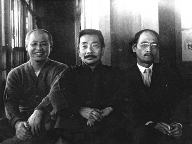 1935年10月21日攝于上海。魯迅與內山完造、野口米次郎(右一)合影。