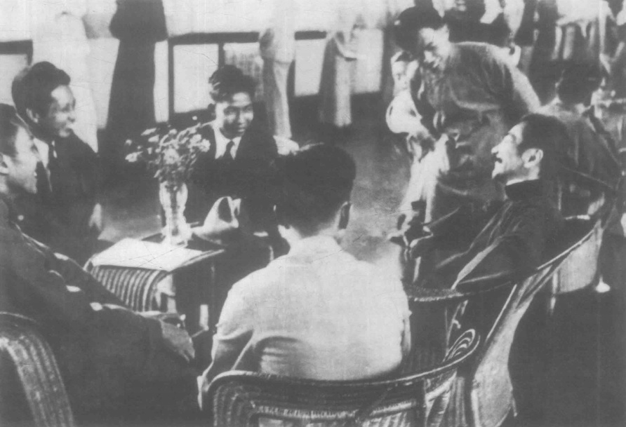 1936年10月8日攝于上海。沙飛攝。魯迅參觀了全國第二回木刻流動展覽會。魯迅此時已在病中,但參觀展覽時精神很好,其中一張照片中可以看到魯迅在大笑,這在魯迅的全部照片中都很罕見。魯迅一生編印、收藏木刻版畫,為中國美術史保留了珍貴的文化遺產。沙飛所攝此組照片共8張,記錄了魯迅最后一次參加大型活動。自參觀展覽會返家11天后,魯迅先生病逝。
