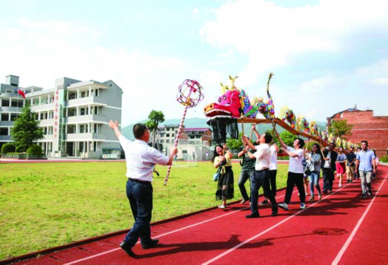 2017年5月,第七期“網絡作家體驗營”走進浙江省龍泉市。圖為網絡作家體驗舞龍。
