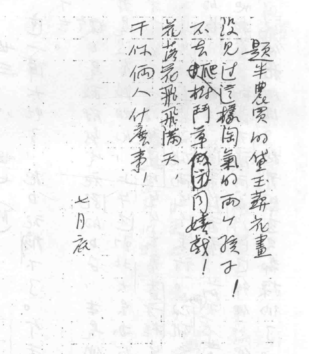 我也好久做不出好詩了,丑詩卻是有的;三月前,寄了幾首在啟明處,你看見么?如今把最近夢中所做的一首詩,寫在下面(還有幾首在啟明處,是同時寄的):