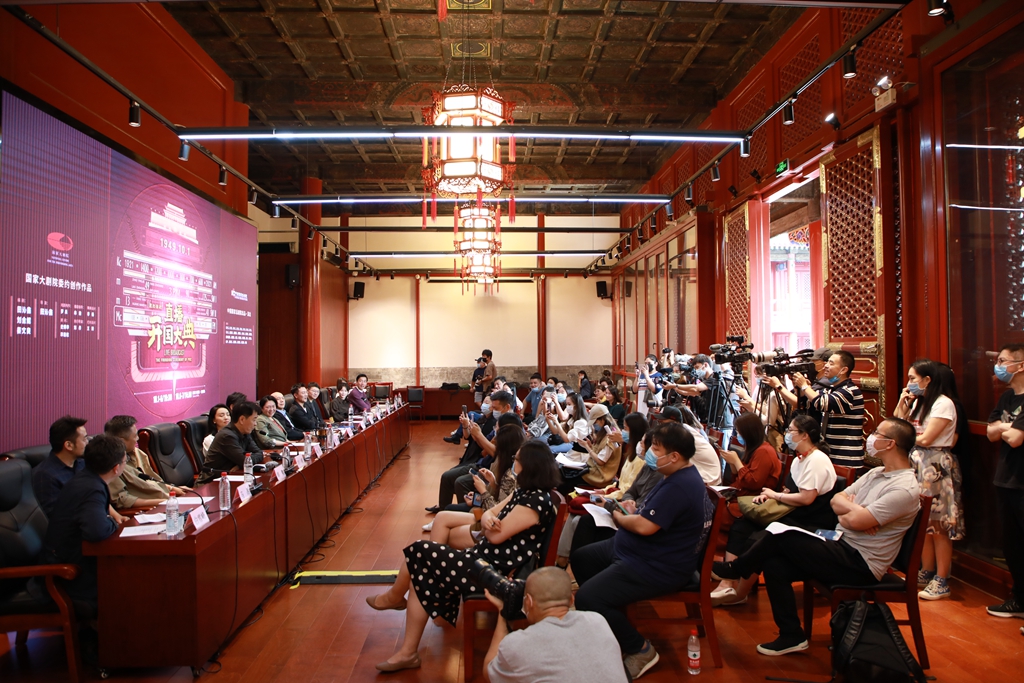 9月16日,由國家大劇院委約創作,中國國家話劇院出品、演出的原創話劇《直播開國大典》召開發布會。中國國家話劇院院長、《直播開國大典》編劇、導演田沁鑫,國家大劇院副院長趙鐵春,演員張桐、吳樾、陶虹、吳彼、劉威、蘇青、韓青、田征、馬昂、趙焌妍等參加活動。