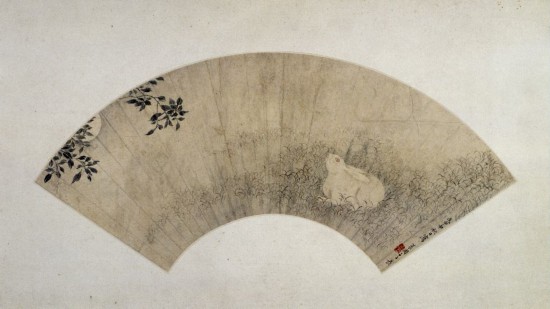 《桂花月兔圖》扇頁,清,李世倬繪,紙本,淡設色,北京故宮博物館藏