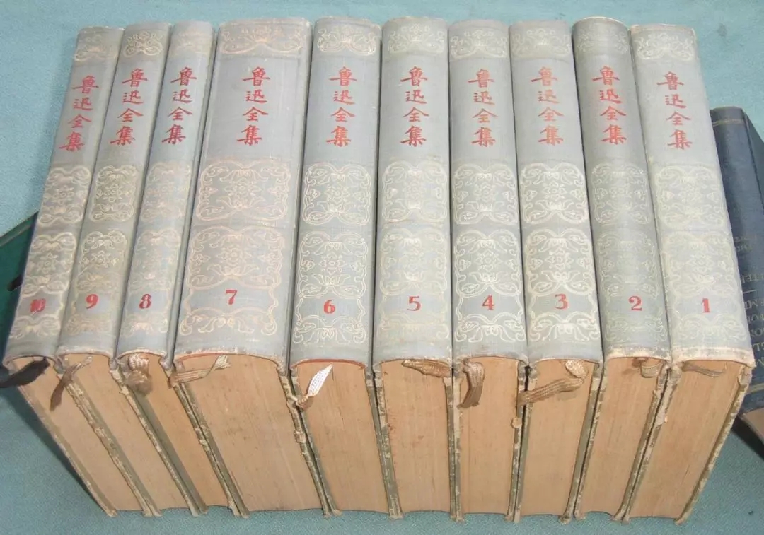 1957至1958年陸續出齊的10卷本《魯迅全集》,此套全集的工藝是紙面布脊精裝