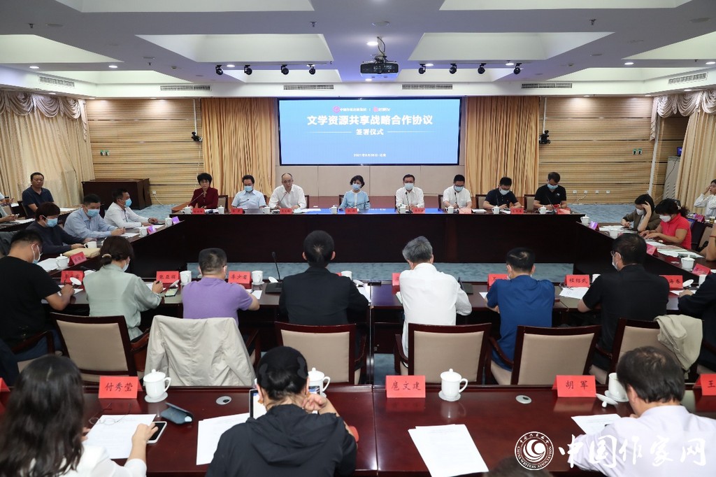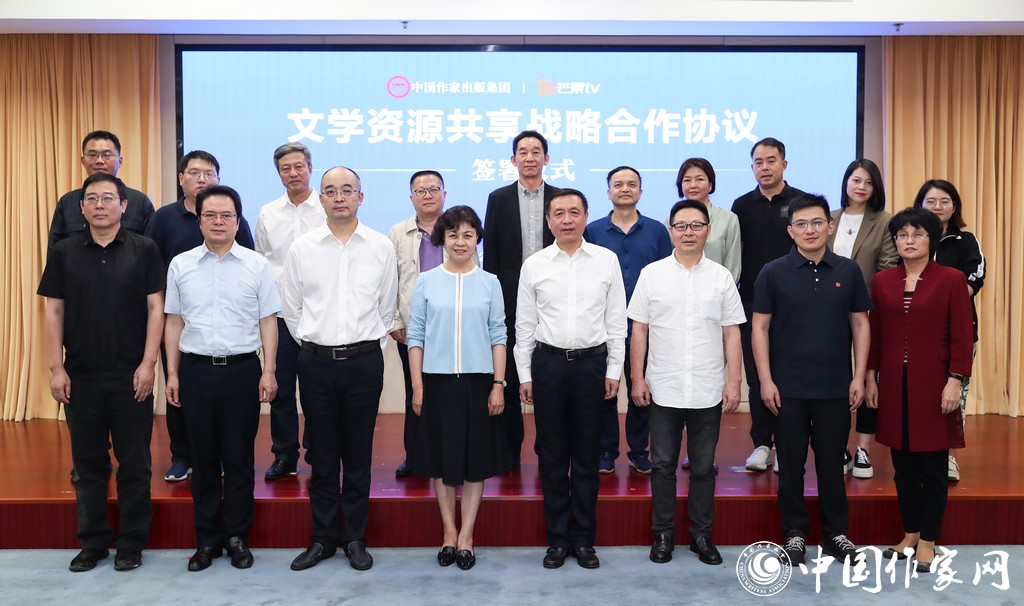 9月26日,中國作家出版集團與芒果TV文學資源共享戰略合作協議簽署儀式在京舉行。中國作協主席、中國文聯主席鐵凝,中國作協黨組書記、副主席張宏森出席儀式。中國作協黨組成員、書記處書記吳義勤,湖南廣播影視集團有限公司黨委書記、董事長張華立,芒果超媒股份有限公司黨委副書記、總經理蔡懷軍,中國劇協分黨組書記陳彥等出席活動。吳義勤、蔡懷軍代表合作雙方簽約。簽約儀式由中國作家出版集團黨委副書記、管委會副主任宋向偉主持。