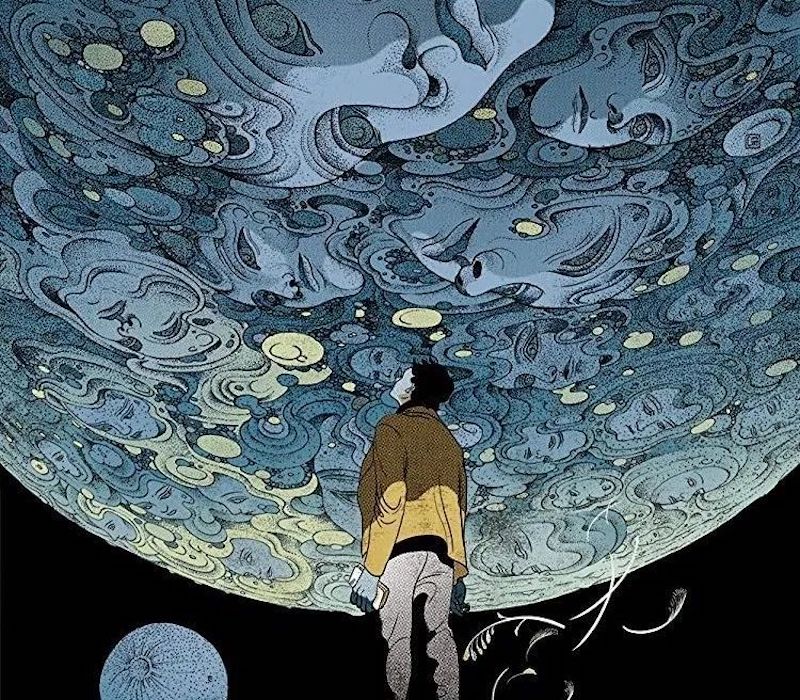 主人公來到索拉里斯星的探測站,見到了自己已逝妻子的幻象,似乎反倒是神秘的索拉里斯星海洋在探測來到此處的人類的內心世界(圖像藝術家:Victo Ngai)
