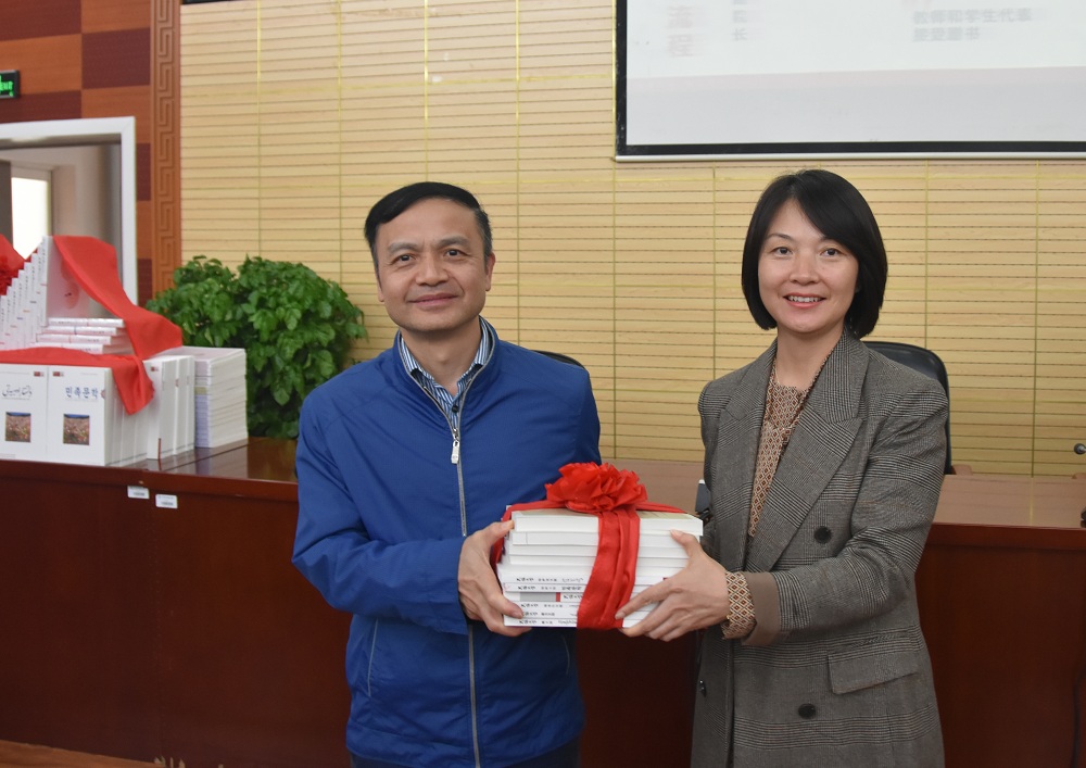 贈書儀式上,鐘進文回顧了中央民大中國少數民族語言文學學院70年來的發展歷程與成就。自2019年學院機構改革以來,學院各方面的建設更加適應新時代民族工作和高等教育的需求,學院自身的發展和人才培養等也都取得一定的成效。