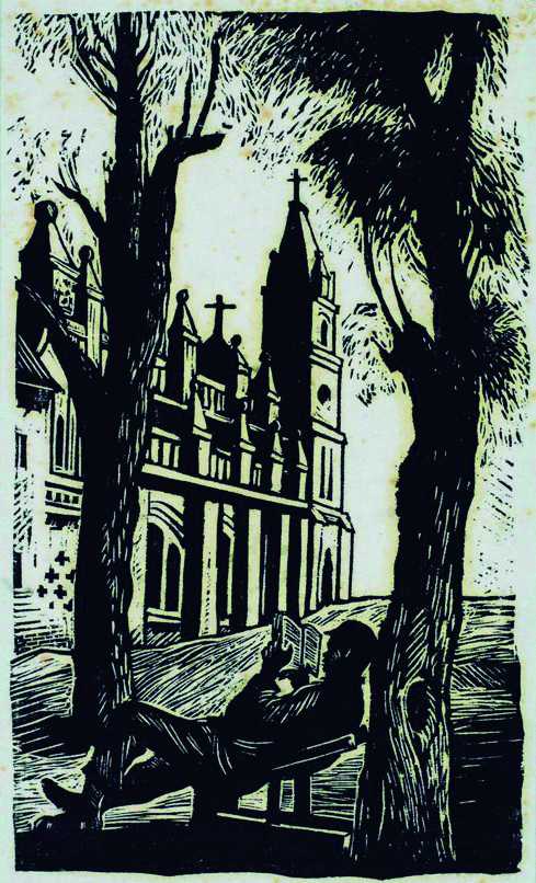 延安魯藝校景(黑白木刻,1939年) 古 元 作