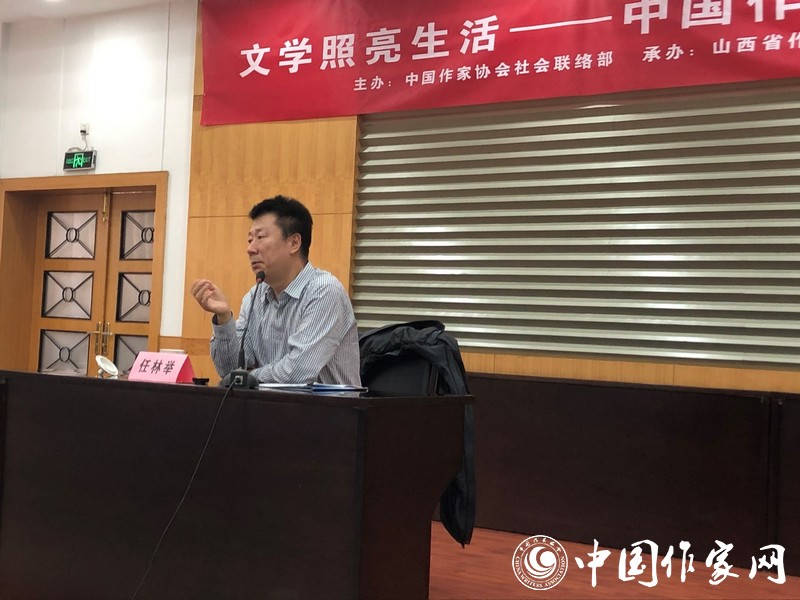 任林舉在22日下午來到太鋼集團太鋼工人俱樂部,為企業基層作家、文學愛好者做了題為“文學與生活或感性與理性”的講座。他從青少年經歷切入,回顧自己如何走上文學之路以及創作《玉米大地》《糧道》等報告文學的過程,并勉勵基層作家扎根現實,創作出反映時代的優秀作品。