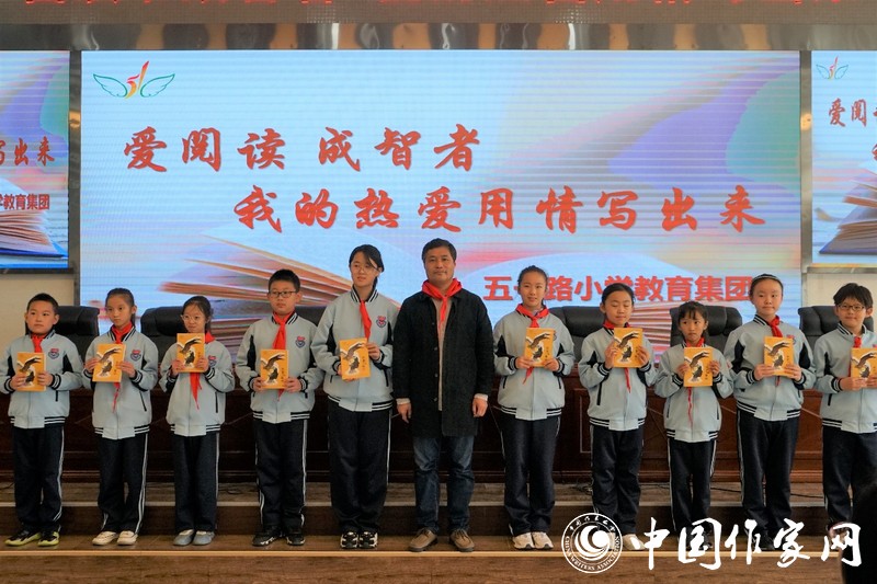 薛濤在五一路小學為全校師生講授以“童年的讀與寫:一對彩色的翅膀”為主題的文學公開課?;顒蝇F場,他與在校學生分享自己對讀與寫的看法,以生動有趣的事例講述個人寫作歷程,并鼓勵孩子們愛上閱讀、愛上寫作。