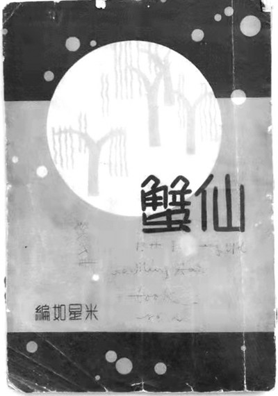 商務印書館刊登的《仙蟹》出版廣告稱:“米星如編《仙蟹》等十二篇,系從我國固有的傳說和外國的名著里,撿取了最動人的故事,用美妙的文筆寫成的,不但供人欣賞,并且給與讀者一種新生命的感覺?!泵仔侨绨选断尚贰菲诙就捈瘯?,可見對此篇的看重。沒落鄉紳殷久從漁民處買了30斤螃蟹進城去賣,因不會料理,蟹全死了,只剩下一只缺兩條腿的蟹還活著。一老者愿花二百元買下此缺腿蟹,還請殷久到自己家中喝酒。乘著酒興老者告訴殷久,那是只來自龍宮的仙蟹,中秋夜會變成馬匹那樣高大,升天去月宮參加嫦娥的宴請,不過仙蟹很快要回來。我有了它還愁什么呢? 殷久聽了,悄悄把仙蟹帶回。中秋夜仙蟹果然顯靈,他騎上蟹背飛往月宮,折得月桂樹上兩根樹枝,隨仙蟹回到了家。月桂樹枝成了金子,殷久家從此富裕了起來。鄰居知道后,向殷久借得仙蟹游月宮,因貪得無厭,折了許多枝月桂,仙蟹到時飛回地球,而那貪心的鄰居留在了月宮再也會不了家。故事的意義并不深奧,想象卻很奇特。