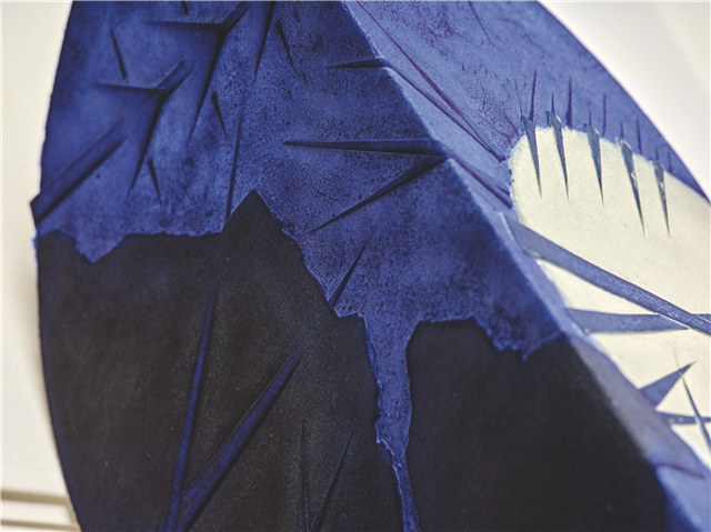 形容《玫瑰與天空之喜悅》令人嘆為觀止毫不夸張。書中奇異華美的“紙上雕塑”呈現出一種匪夷所思的金石質感。如果有機會漫步意大利梵蒂岡,就應該對梵蒂岡博物館庭院中庭的一件黃銅質地雕塑過目難忘。這件被命名為《球中球》的球形雕塑直徑超過4米,觀者透過球體的裂縫可以看到犬牙交錯的“利齒”,既像交錯的齒輪,又讓人聯想到累累的傷痕。這樣一座富有現代感的作品佇立于古老的梵蒂岡中庭非但毫不違和,反而氣場強大,恰如其分地烘托和呼應了這里宗教與藝術圣地的氛圍。藝術家手作書《玫瑰與天空之喜悅》中鋸齒的形狀和金石般的肌理與這一雕塑的特點如出一轍。它們到底是如何產生的呢?原來,意大利地中海中部沿岸,居住著一些從事雕塑及首飾創作的家庭,因地制宜地利用墨魚體內一種圓弧狀的骨頭制作母版,是這些手工家族中世代流傳的鑄造秘密。雕塑上那些既具有點狀肌理,又具有金石質感的樣子,便來自那些致密而堅硬,“即使在火中也無法輕易燒化”的骨骼。