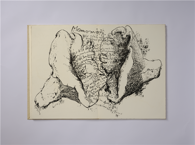 君特·格拉斯的手作書《蘇菲走到蘑菇從中》有大量手稿、詩歌與繪畫草圖