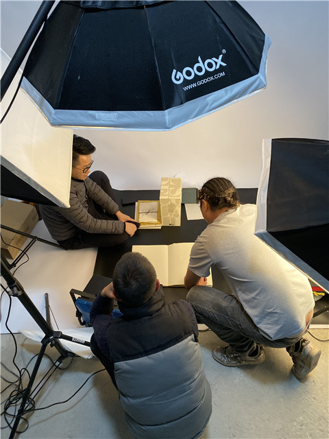為了更加精準地還原藝術家手作書特別的質感,尋找能勝任的攝影師變得非常重要。本來找過幾任都不滿意,后來幸運地遇到了《新周刊》曾經的王牌攝影、后來成為職業藝術家的閻實。好事多磨,是《書之極》創作始終的寫照?!坝烧l掌鏡”的問題剛剛塵埃落定,繼而又要面對“在哪里拍”的靈魂拷問。好在王驥和合作伙伴們志趣相投,大家都很喜歡“車庫創業”起家的扎克伯格、喬布斯,于是幾人一拍即合,在王驥家的地下車庫搭建起了拍攝《書之極》的攝影棚。