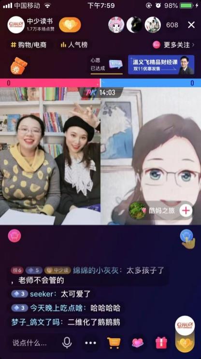 為響應“國際反校園暴力和欺凌日”,中國少年兒童新聞出版總社有限公司(以下簡稱“中少總社”)旗下官方抖音號“中少讀書”于11月7日晚為全國小朋友們舉辦了一場主題為“保護自己,關心他人”的線上心理健康直播,本次活動特別連線到青少年心理健康輔導員、心理懸疑小說“紫霧心謎”的作者晏菁,為小讀者們普及校園欺凌的防范與解決辦法,并在線上解答了不同小讀者的成長困惑。