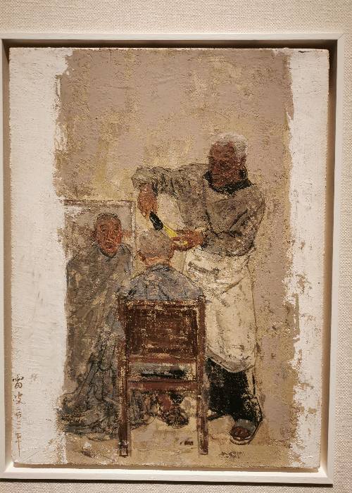 打漁的,理發的,練攤的,賣肉的,旁觀的,無事閑聊的……繁華的世間,他為何選擇了如此的角度呢?面對升任畫院院長的良機,他為何堅辭而去,跑到家鄉廣西隱居三年,在這些無名小卒面前駐足流連呢?看慣了雅致流利,雷波的油畫給人“跳出來”的“不一樣”的感覺。