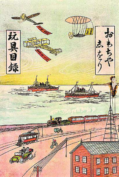 甲午戰爭一役,清政府大敗并賠款二萬萬兩白銀于日本,這相當于日本全國三年總收入,間接扶植了日本輕、重工業,而日本的玩具工業也在此時開始起飛。1909—1910年(明治四十二年至四十三年)間,“海羅氏”輕便式鐵皮印刷機的發明,加上新式沖床被引進日本,印刷及制作鐵皮玩具的成本大幅度降低,產量接著提高,使日本一躍而成為20世紀重要的玩具制造國之一。