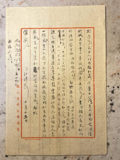 另一通終得入藏寒齋的信札更令人感覺珍貴。所以說更者,不僅同樣寫給我素所景仰的施蟄存先生,同樣內容相當豐富,還關涉浦先生短暫一生中學術、教育之外的另一件功業,主政清華大學中國文學系。這對于正謀食于清華中文系的后輩而言,不能不平添一份大大的親近感了。為節省篇幅,只將相關內容迻錄于下: