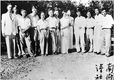 南湖詩社的建立緣起于湘黔滇旅行團時期,創始人是劉兆吉和向長青。劉兆吉當時承擔了在聞一多先生指導下搜集民間詩詞的任務,兩人常常一起寫,一起討論詩歌。向長青提出到達昆明后約一些愛好詩歌的同學組織詩社,出版詩刊。后在朱自清、聞一多等老師的支持和鼓勵下,于1938年5月10日在蒙自成立南湖詩社。因文法學院坐落于南湖之濱,便定名為南湖詩社,社員主要有向長青、劉兆吉、劉重德、劉綬松、陳士林、陳三蘇、李敬亭、周定一、林蒲、趙瑞蕻、穆旦等20余人。此后不久,蒙自文法學院遷到了昆明,南湖詩社也改稱“高原文藝社”了。