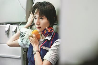 《中國機長》中,由于劇情需要,人物都帶著氧氣面罩,演員全靠眼睛表達在極端情境下人物情緒的掙扎。當袁泉扮演的乘務長畢男在機艙突遇釋壓后盡力平穩乘客們的情緒,試圖確定乘務組人員的安全,從發現李沁扮演的周雅文被氣流撞擊暈倒的不安和焦急到后來周雅文終于回到工作崗位的踏實和欣慰,這些復雜的情緒完全由她那雙秀麗的、帶有異國風味的大眼睛詮釋:飽含熱淚又極力克制,后用堅定的眼神和穩定的聲音安撫慌張的乘客們。