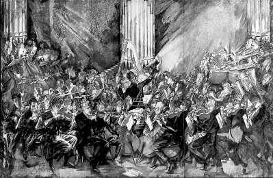 馬克斯·奧本海默的畫作《樂團》,圖中馬勒在指揮維也納愛樂樂團。資料圖片