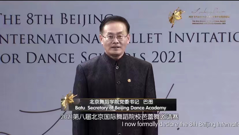 在文化和旅游部、北京市委市政府關心和北京市教育委員會的大力支持下,由北京舞蹈學院主辦的2021第八屆北京國際舞蹈院校芭蕾舞邀請賽于12月3日晚線上開幕。大賽組委會主席、北京舞蹈學院黨委書記巴圖宣布2021北京國際舞蹈院校芭蕾舞邀請賽開幕。大賽組委會主席、北京舞蹈學院院長郭磊致開幕詞。